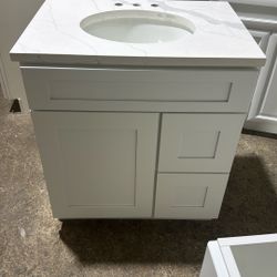 White Shaker Vanity Cabinet With Quartz Countertop$600Newportville, PA