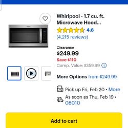 NEW Whirlpool Stainless Steel Over The Range Microwave$200Edgewater Park, NJ