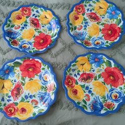 The Pioneer Women Delaney Cobalt Rim Floral Blooms Melamine Dinner Plates Set of 4$20Brick Township, NJ