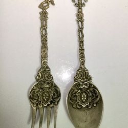 Vintage Rare Ornate Italian Brass Serving Set Fork & Spoon, Horse Floral, Made In Italy$65Monroe Township, NJ