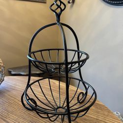 2 tier fruit basket / bowl - black metal 17.5" tall $35Burlington, NJ