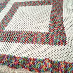 Afghan New Hand Crocheted Afghan Acrylic Machine Wash/Dry 56 x 56 hand Crocheted Afghan. Made from Caron Sayelle white and Loops & Threads multi color$45Bensalem, PA