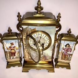 Antique French Brass Mantel Clock Set With Garnitures, Hand-Painted Panels$985Monroe Township, NJ
