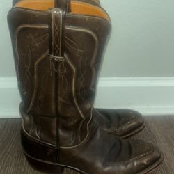 Lucchese Brown Leather Cowboy Boots Square Toe Handmade Size 8D$250Mount Laurel Township, NJ
