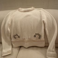 Women’s Petite Small Liz CLAIRBORNE Ivory Sweater With Floral & Pearl Embellishments$13Allentown, NJ