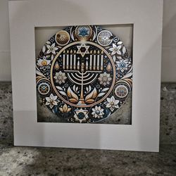SYMBOLIC JEWISH ACRYLIC MENORAH, STAR OF DAVID MATTED PREFRAMED FITS 12X12...$30Manalapan Township, NJ