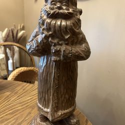 Santa Sculpture - ceramic - 17" tall with wood carved appearance $40Burlington, NJ