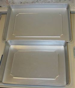 Pair Wilton Aluminum Sheet Cake Pans .. used once light scratches. They measure 13" x 9" x 2" and 12" x 16" x 2" both for $15 Bristol Boro, Pa. 19007$15Croydon, PA