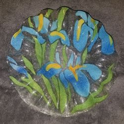 Vintage 7" Sydenstricker Iris Flower Ruffle Edge Fused Art Glass Desert Bowl.$10Penndel, PA