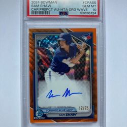 Sam Shaw 2024 Bowman - Chrome Prospects Auto-HTA Orange Wave /25 #CPA-SS PSA 10$1Manalapan Township, NJ