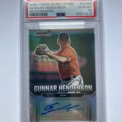 Gunner Henderson 2022 Prizm Draft Pick Green Auto #AUGH PSA 10$1Manalapan Township, NJ