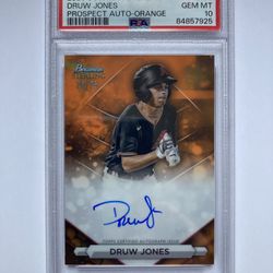 Druw Jones 2023 Bowman Sterling – Prospect Autograph Orange /75 #PADJ PSA 10$1Manalapan Township, NJ
