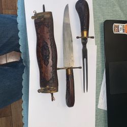 Vintage East India Hand Made Carved Brass Carving Knife And Fork $100Freehold, NJ