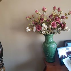 Green Ceramic Vase Silk Roses$50Toms River, NJ