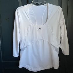 Women’s ADIDAS Polyester/spandex active wear white 3/4 sleeve top… Size 10/12$7Pt Pleas Bch, NJ