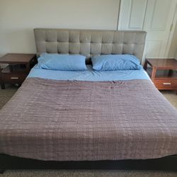 $200 BED - West Elm Grey Leather Tufted Headboard (King Frame)$200Tinton Falls, NJ