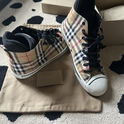 Burberry Men's Plaid High-Top Sneakers - Beige and Black$275Medford Lakes, NJ