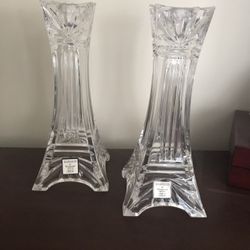 WATERFORD 7” Tall Set Crystal Candleholders Eiffel Tower Design$45Howell Township, NJ