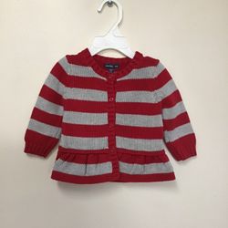 Baby Girls GAP 100% Cotton Red & Gray Striped Cardigan Sweater..size-3-6 Months$4Manasquan, NJ