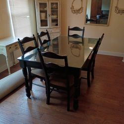 Big Black Dining Room Table, 5 Chairs With Glass Top$250Mount Laurel Township, NJ
