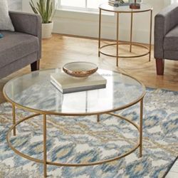 Stunning Gold Glass & Metal Coffee Table 36” Round Tempered Glass Modern Sleek$30Toms River, NJ