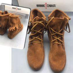 Minnetonka Moccasins Women’s Ankle Fringe Brown Leather Sizes available 6 & 7$35Tinton Falls, NJ