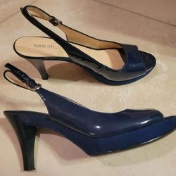 NINE WEST Ladies navy blue patent Platform Shoes Sz 7.5$10Beachwood, NJ