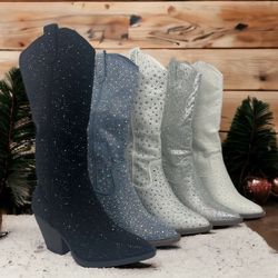 Shoe Fash Women's Rhinestone Boots Western Mid Calf Pointed Toe Chunky Stacked Heel Fashion Cow Girl Boots For Women$29Mount Laurel Township, NJ