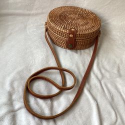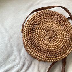 Woven Braided Round 8” Diameter W/ Leather Strap,Bow Closure Crossbody Bag(Good Condition)$20Brick Township, NJ
