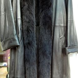 Leather coat with natural fur inside with fur collar that cuddles the neck and drapes down to the length of the coat$300Howell Township, NJ