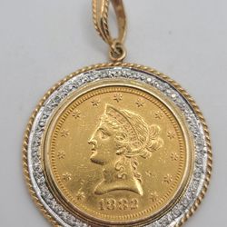 14k Gold Diamond Pendant With 1882 $10 Gold Eagle Coin$2,500Croydon, PA