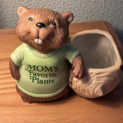 Vintage 1981 Shirt Tales Ceramic Beaver Planter Mom's Favorite Plants Hallmark $15Trenton, NJ