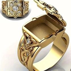 MENS NEW SECRET POUCH CZ TITANIUM GOLD SIZE 11 ORNATE RING$25Manalapan Township, NJ
