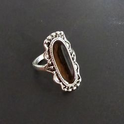 CHOCOLATE OBSIDIAN POLISHED CABECHON NEW SIZE 8 SILVER SCROLL BAND RING$15Manalapan Township, NJ