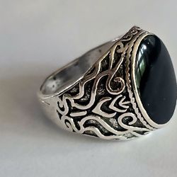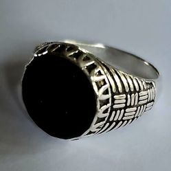 BEZEL SET BLACK ONYX TITANIUM EMBOSSED SILVER NEW SIZE 9 MENS STUNNING RING$20Manalapan Township, NJ
