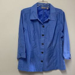 Women’s CHICO’S 100% Polyester blue 3/4 Sleeve Button-Down Shirt/Jacket… Size 2 = Large/12$12Pt Pleas Bch, NJ