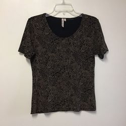 Women’s SUSAN LAWRENCE Black & beige short sleeve paisley print pull over stretch top… Size small$6Pt Pleas Bch, NJ