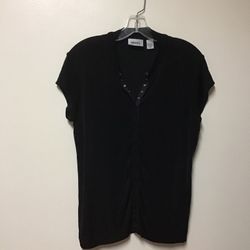 Women’s SUSAN GRAVER STYLE polyester/Spandex 3/4 Sleeve Button-Down Black Blouse… Size Xl$8Pt Pleas Bch, NJ