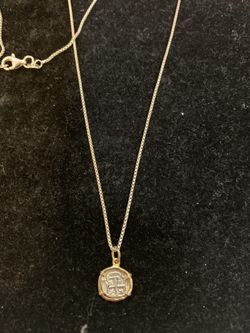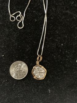 Beautiful Atocha silver coin in gold bezel pendant in gold chain$350Barnegat, NJ