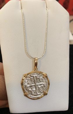 Atocha silver coin in gold bezel with silver chain$139Ocean Township, NJ