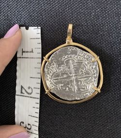 Atocha silver coin pendant in gold bezel$220Barnegat Township, NJ
