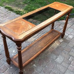 Long sofa table with glass insert and caning on the bottom$65Wall Township, NJ