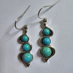 BLUE HOWLITE SWING TURQUOISE BOHO NAVAJO TRENDY NEW SILVER EARRINGS $10Manalapan Township, NJ