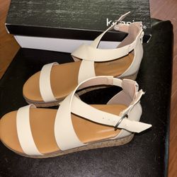 LIKE NEW Women's size 10 Wedge Cork Platform Sandals Kensie off white Ivory Cream Shoe ankle strap closed zip heel$8Toms River, NJ