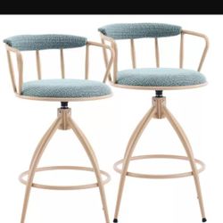 Karl Home Blue Snow Linen Fabric Swivel Bar Stools With Wooden Legs$50Lakewood, NJ