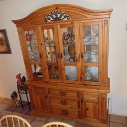 Broyhill 2pc pine illuminated China hutch$400Albuquerque, NM