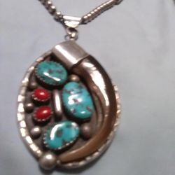 Navajo Sterling Silver w/turquoise,Bear Claw And Coral Pendants$75Cedar Crest, NM