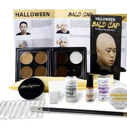 Halloween Bald Caps Costume Kit for Adults & Kids - Realistic Latex Bald Head Cap with Adhesive Glue & Makeup - Complete Costume Set for Cosplay, SFX $15Queens, NY