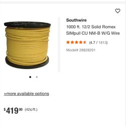 Southwire 1000 ft. 12/2 Solid Romex SIMpull CU NM-B W/G Wire$350The Bronx, NY