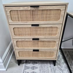 4-Drawer Rattan Dresser — Natural Oak Finish, Black Metal Legs, Boho$100Bayonne, NJ